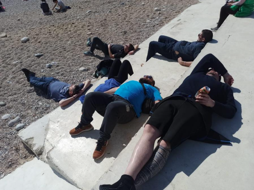 Voici un bon repos au chaud sous les 21° de CASSIS bien mérité pour cette bande de joyeux lurons !